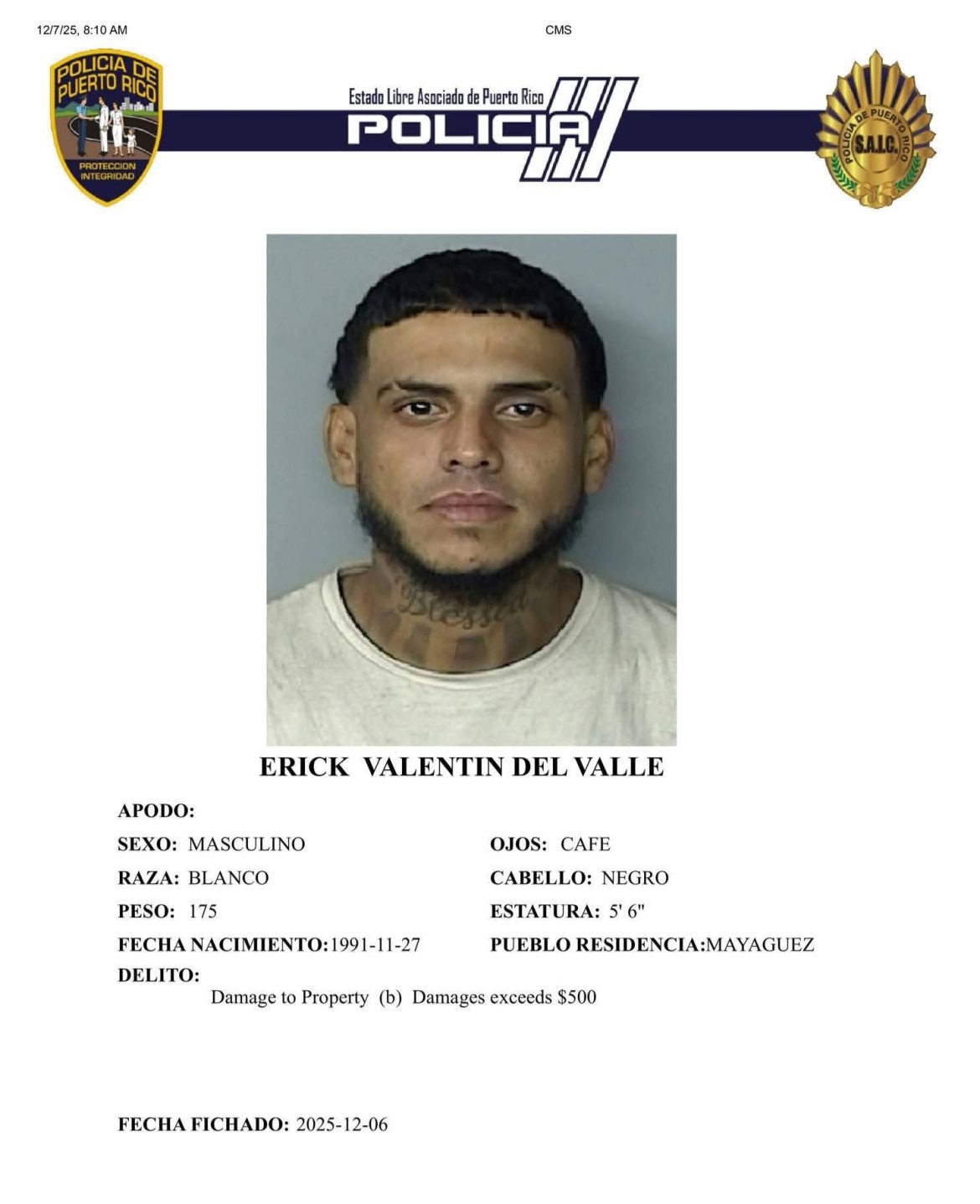 Erick Valentín fue presentado ante la jueza Jessica Rodríguez Maldonado, quien determinó causa por el Artículo 199 (daños) y le impuso una fianza de $1,000. El imputado no prestó la misma, por lo que fue fichado e ingresado en la Institución Correccional de Ponce.